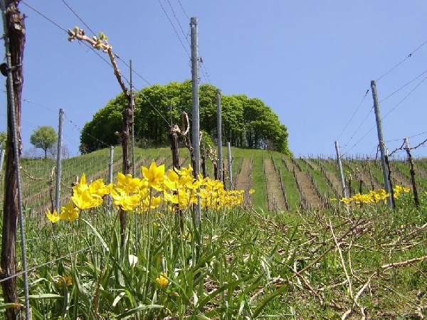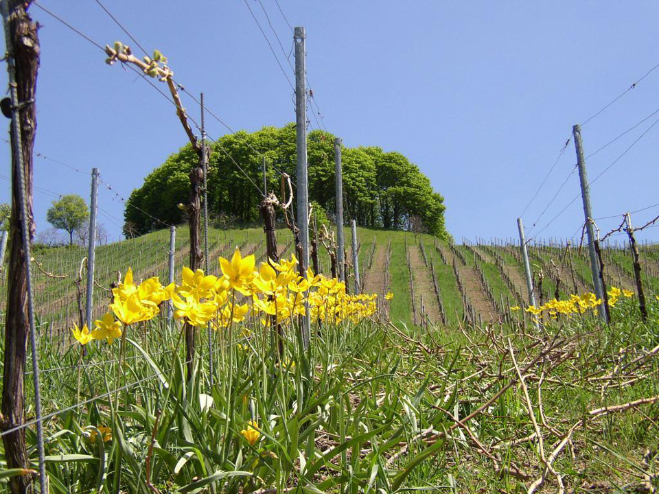 Jedes Frühjahr verbreiten die zahlreichen wilden Weinbergstulpen, „Tulipa sylvestris“ mit ihrem Duft und den gelben Farbtupfen ein ganz besonderes Flair im Weinberg.