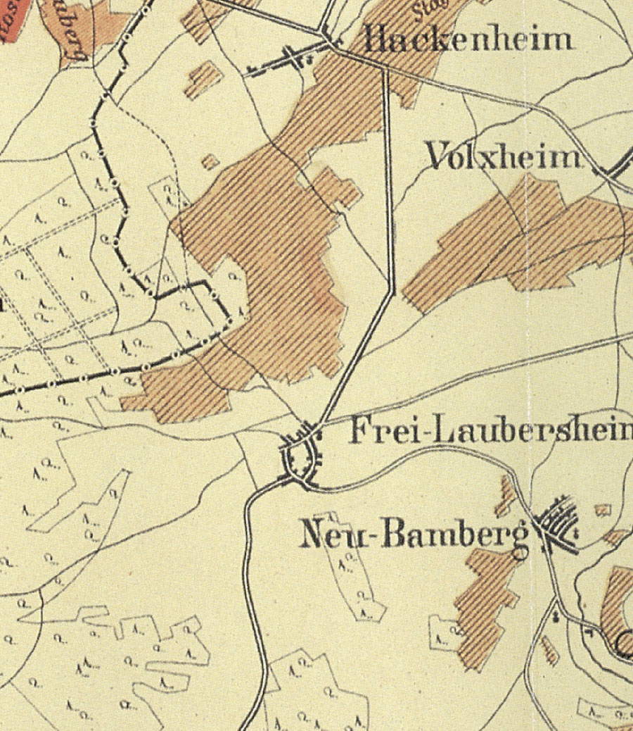 Frei-Laubersheim mit seinen Lagen. Ausschnitt aus der historischen Nahe-Weinbau-Karte für den Regierungsbezirk Koblenz aus dem Jahre 1901.