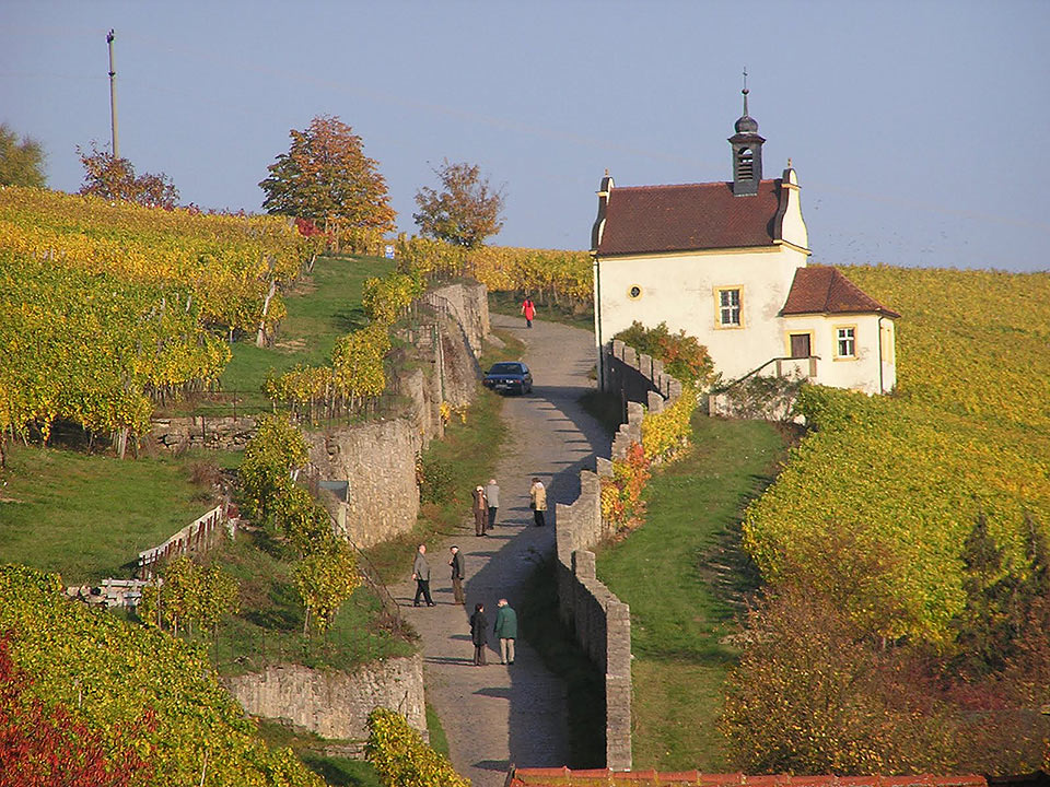 Der Kapellenberg liegt direkt an der Spitze des Maindreiecks.