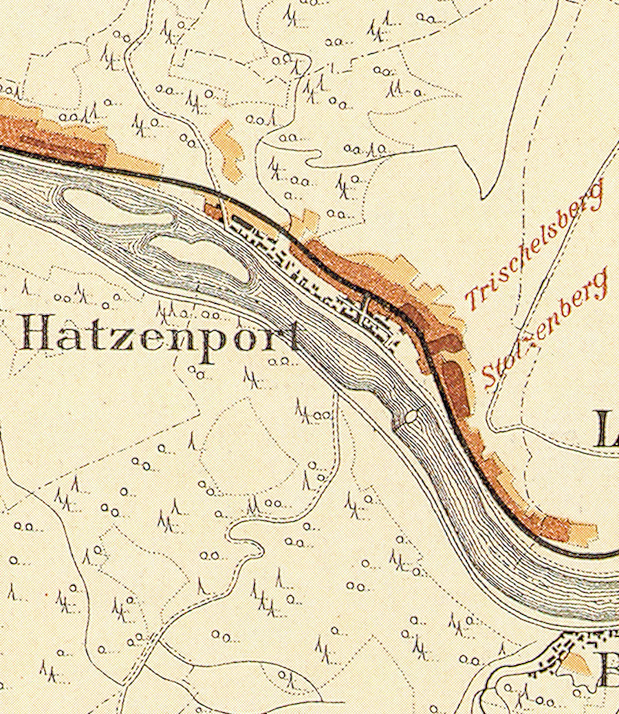 Hatzenport mit seinen Lagen.Ausschnitt aus der historischen Mosel-Weinbau-Karte für den Regierungsbezirk Koblenz aus dem Jahre 1897.