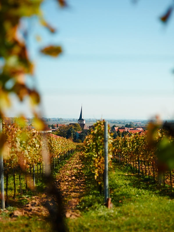 Blick von der Ersten Lage Laumersheimer Kirschgarten.