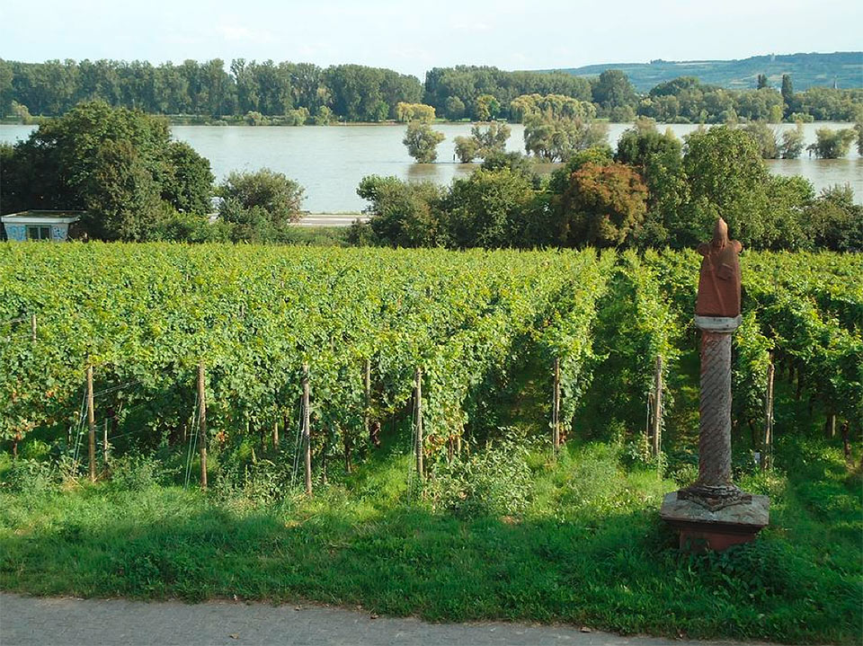Nur 150 m vom Ufer des Rheins entfernt liegt dieser Weinberg an einem kleinen Südhang. Das besondere Kleinklima ist geprägt durch den an dieser Stelle sehr breiten Rhein, welcher als Wärmespeicher fungiert und die Wirkung der Sonneneinstrahlung ergänzt. Der Austrieb und die Blüte beginnen hier immer einige Tage früher und gewähren eine längere Reifezeit. An den auf reinem Löß stehenden, dicht gepflanzten und über 60-jährigen Reben wachsen wenige kleinbeerige Trauben. Deren Aromen sind sehr intensiv und es entstehen aus Ihnen sehr dichte und vielschichtige Weine.