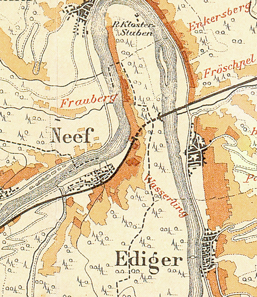 Neef mit seinen Lagen. Ausschnitt aus der historischen Mosel-Weinbau-Karte für den Regierungsbezirk Koblenz aus dem Jahre 1897.