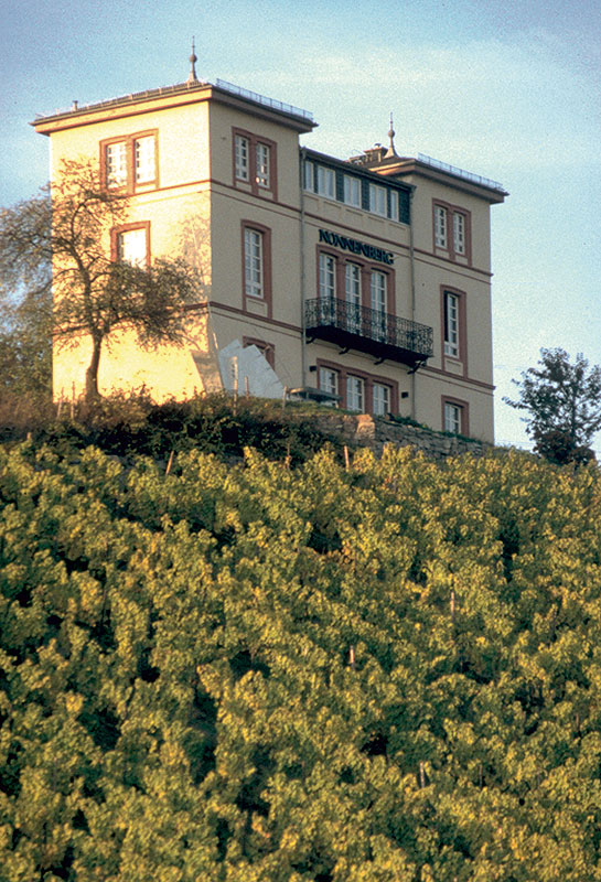 Rauenthaler Nonnenberg: In der spätklassizistischen Villa auf der Spitze der Hanglage Nonnenberg lebten einst Nonnen des nahen Klosters Tiefenthal, die den Weinberg bewirtschafteten. So erhielt die Lage ihren heutigen Namen.