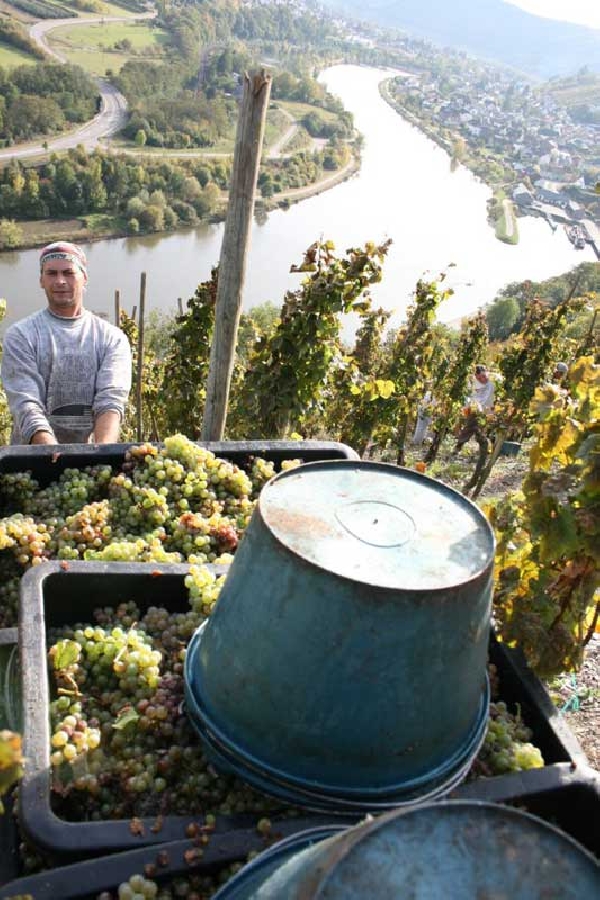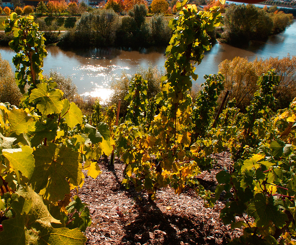 Der Fluss speichert die Wärme und reflektiert die gleißend hellen Sonnenstrahlen, Reben und Trauben werden umflossen von Wärme und Licht.