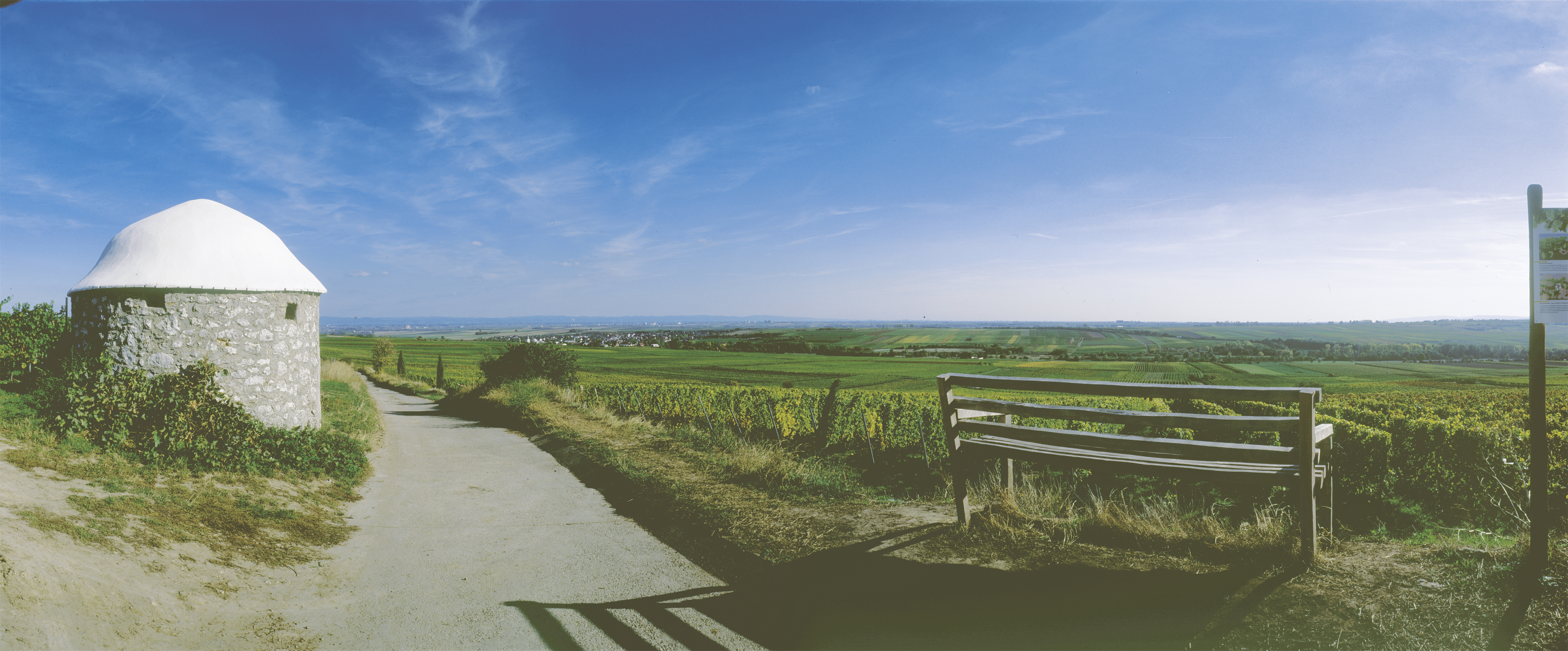 • Diese Abbildung zeigt den Blick aus der Lage Morstein von Weingut Wittmann.