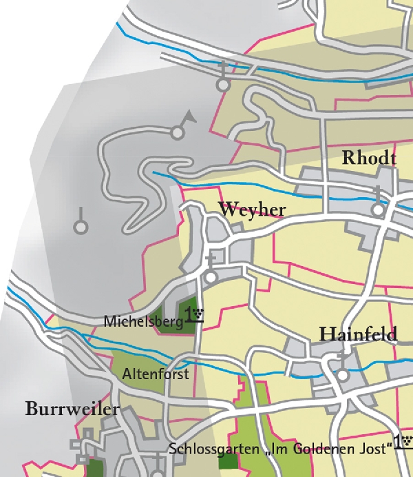 Der Michelsberg ist in der traditionellen Weinbauregion Haardtrand, zum Modenbachtal hin zwischen Burrweiler und Weyher gelegen.