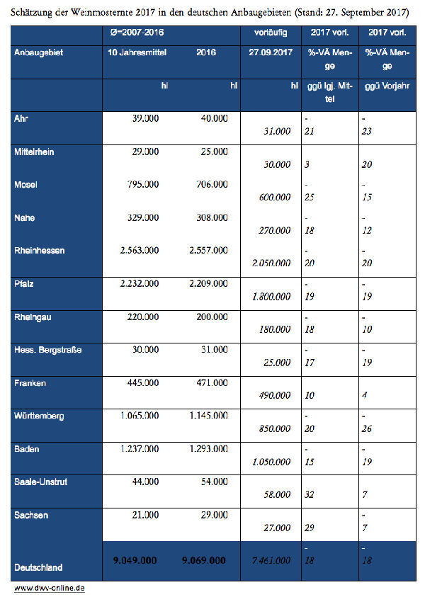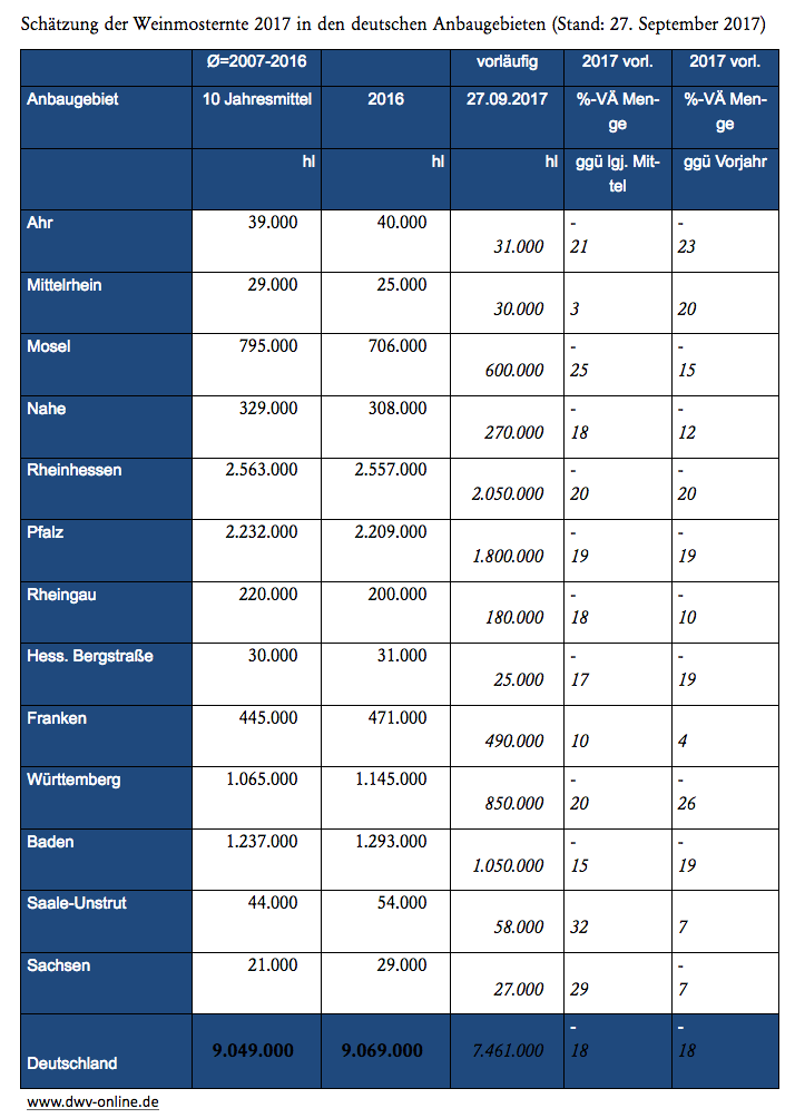 Wie sich der Weinjahrgang in den 13 individuellen deutschen Weinbaugebieten entwickelt hat, zeigen die detaillierten Einzelberichte unterhalb der Tabelle.