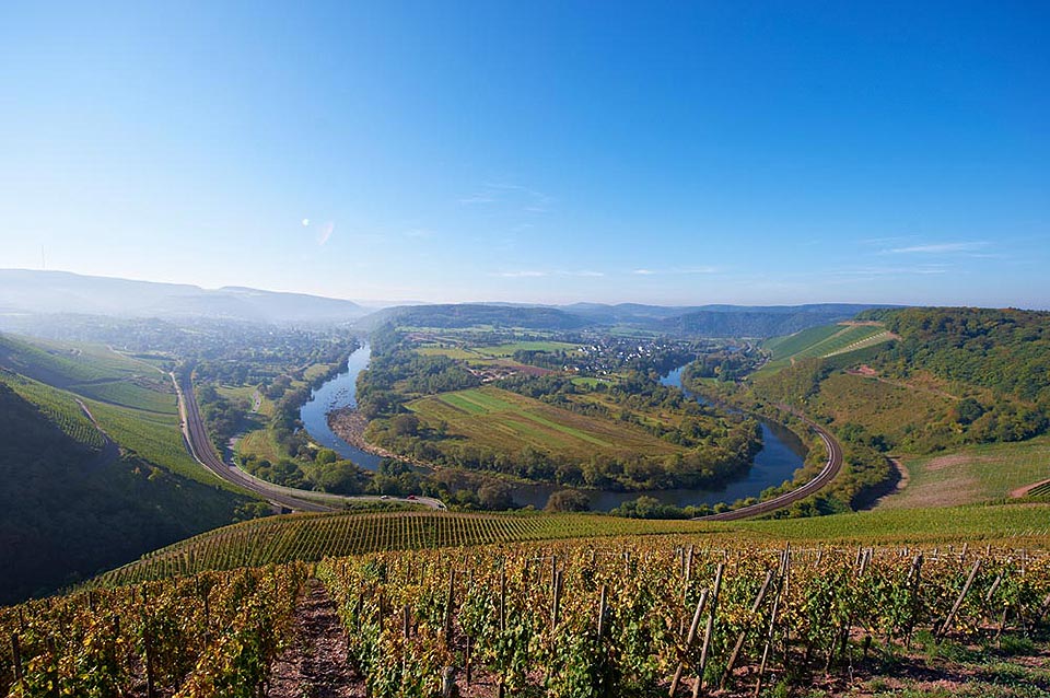 Nichts anderes als die Weinberge oberhalb von Piesport rissen den römischen Prinzenerzieher Ausonius im Jahr 371 zu dieser hymnischen Beschreibung hin. Die Weine, die in diesem gewaltigen Amphitheater entstehen können, verdienen ein ähnliches Preislied. In einem Boden mit außergewöhnlich viel Feinerde und exzellenter Wasserversorgung ist der Grund gelegt für frucht- und edelsüße Rieslinge, die trotz eines extrem niedrigem Alkoholgehalts perfekt sind.