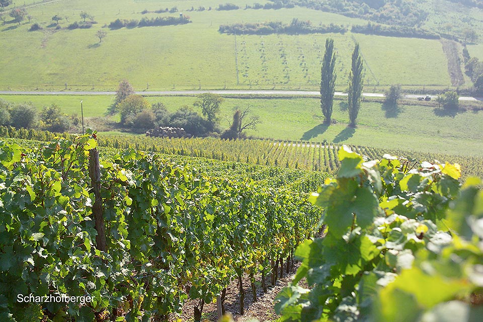 Die Ursprünge des Scharzhofberger gehen auf eine Schenkung an das Kloster St. Marien im Jahr 700 zurück. Das Besondere am Mikroklima der Lage sind die enormen Temperaturschwankungen. Einerseits kühl aber auch mit windgeschützten Bereichen, in denen sich gut die Wärme hält.
