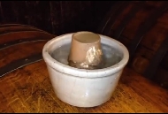 Auch hier eine Flasche mit gutem Füllstand, auch hier fällt der Korken in die Flasche, also wird auch hier der Inhalt durch ein Sieb dekantiert.