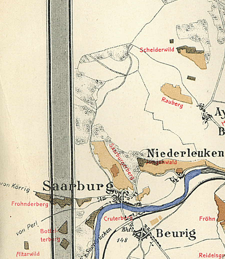 Zur LageMan findet im Saarburger Rausch auch Anteile von Grauwacke und Roterde. Die prägnante immer aber feingliedrige Säure und eine ureigene Frische kennzeichnen die Weine. Der wunderschöne Rundumblick erfasst das Saartal mit der Saarburg und den malerischen Ort Saarburg.