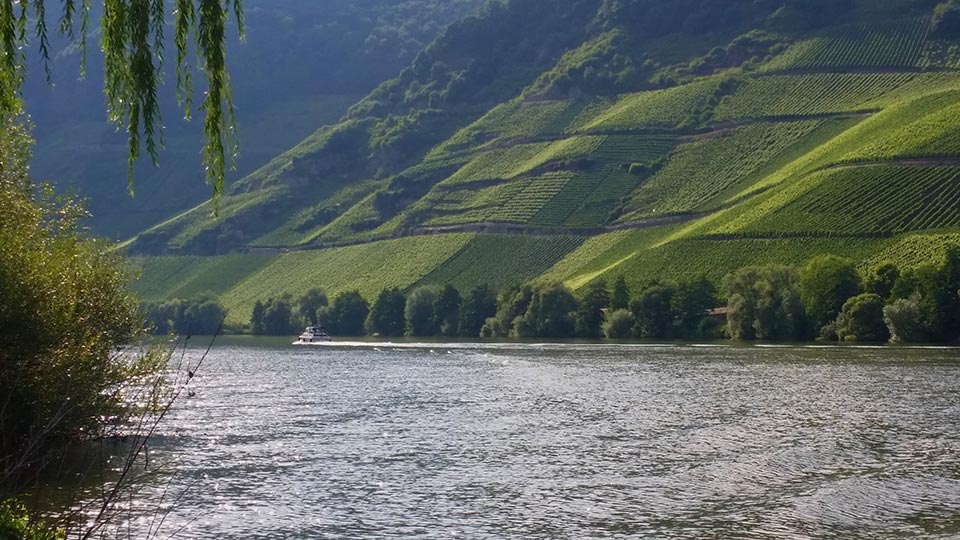 Nichts anderes als die Weinberge oberhalb von Piesport rissen den römischen Prinzenerzieher Ausonius im Jahr 371 zu dieser hymnischen Beschreibung hin. Die Weine, die in diesem gewaltigen Amphitheater entstehen können, verdienen ein ähnliches Preislied. In einem Boden mit außergewöhnlich viel Feinerde und exzellenter Wasserversorgung ist der Grund gelegt für frucht- und edelsüße Rieslinge, die trotz eines extrem niedrigem Alkoholgehalts perfekt sind.