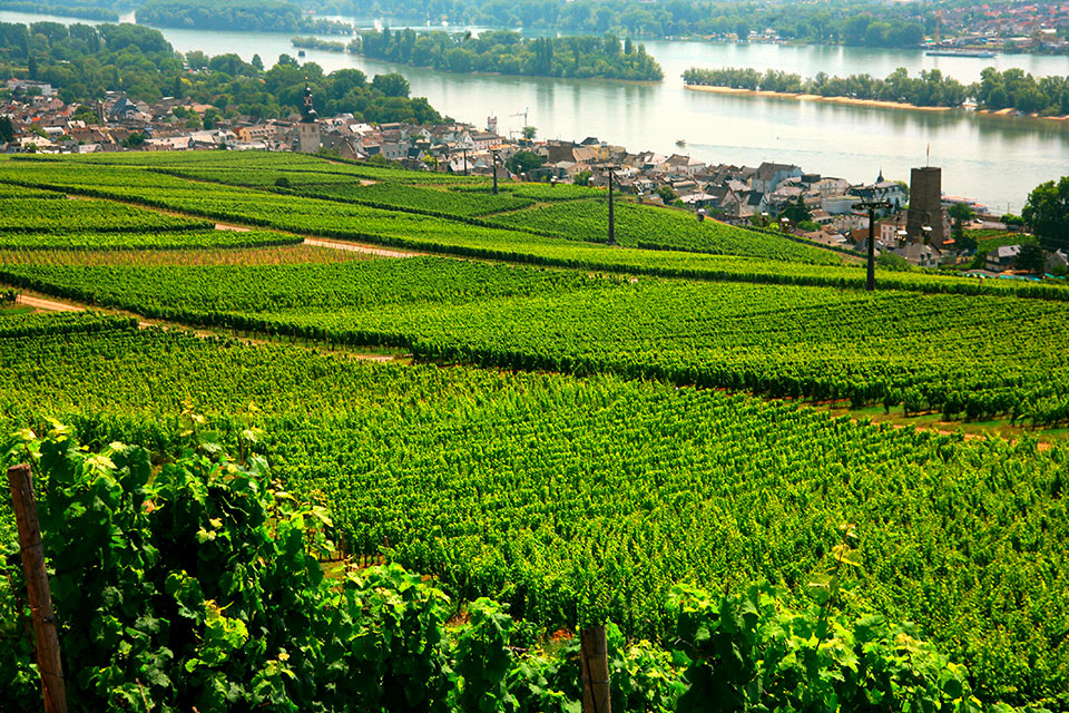 Der Rüdesheimer Berg Schlossberg ist mit 70% Steigung die steilste Weinbergslage im Rheingau.