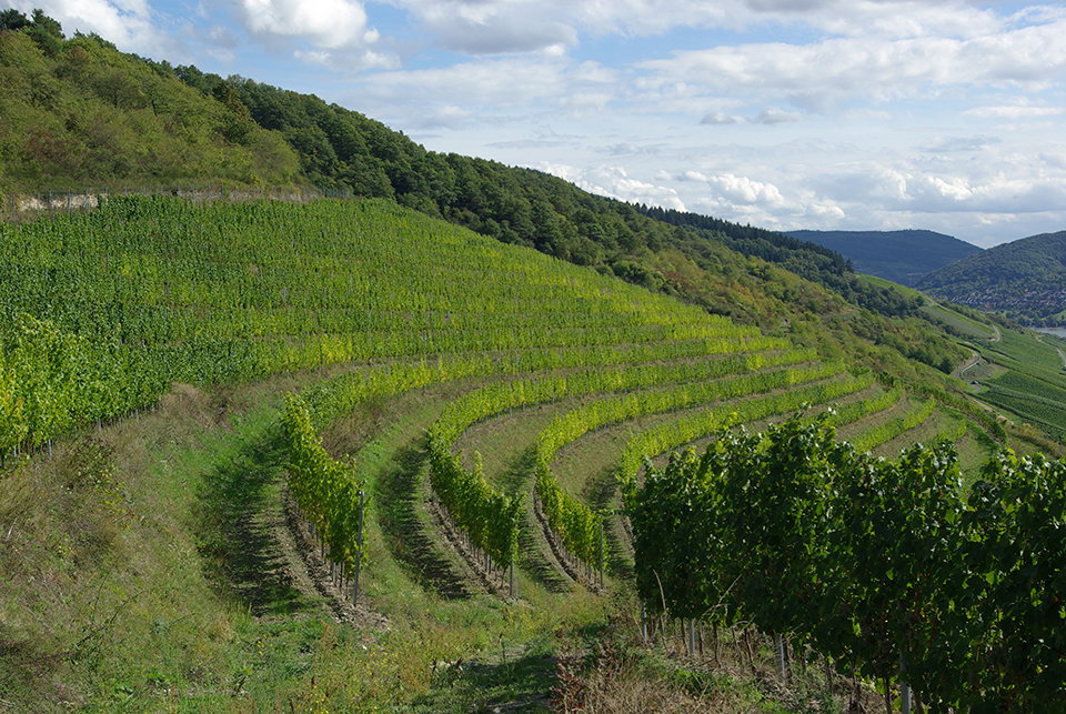 Zwischen Assmannshausen und Lorch, dem Rhein zugeneigt, zieht sich die Lage von der Bahnlinie aufwärts, erst etwas flacher, dann steil in die Höhe.