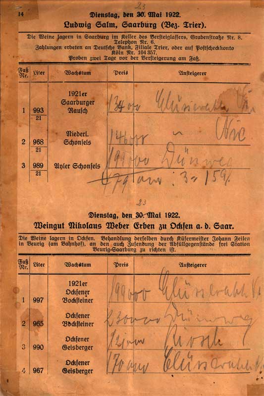 Die Ayler Kupp - Weine waren bereits um 1850 begehrt und fanden sich Ausgangs des 19. Jahrhunderts in ihrer Hochphase, als Preise vergleichbar denen des Burgund und die Höchsten an der Saar gezahlt wurden.