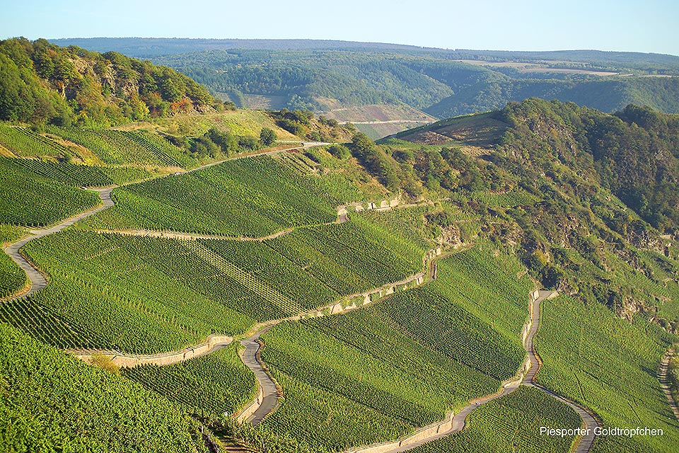 Nichts anderes als die Weinberge oberhalb von Piesport rissen den römischen Prinzenerzieher Ausonius im Jahr 371 zu dieser hymnischen Beschreibung hin. Die Weine, die in diesem gewaltigen Amphitheater entstehen können, verdienen ein ähnliches Preislied. In einem Boden mit außergewöhnlich viel Feinerde und exzellenter Wasserversorgung ist der Grund gelegt für frucht- und edelsüße Rieslinge, die trotz eines extrem niedrigem Alkoholgehalts perfekt sind.