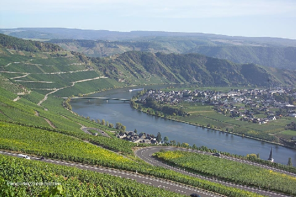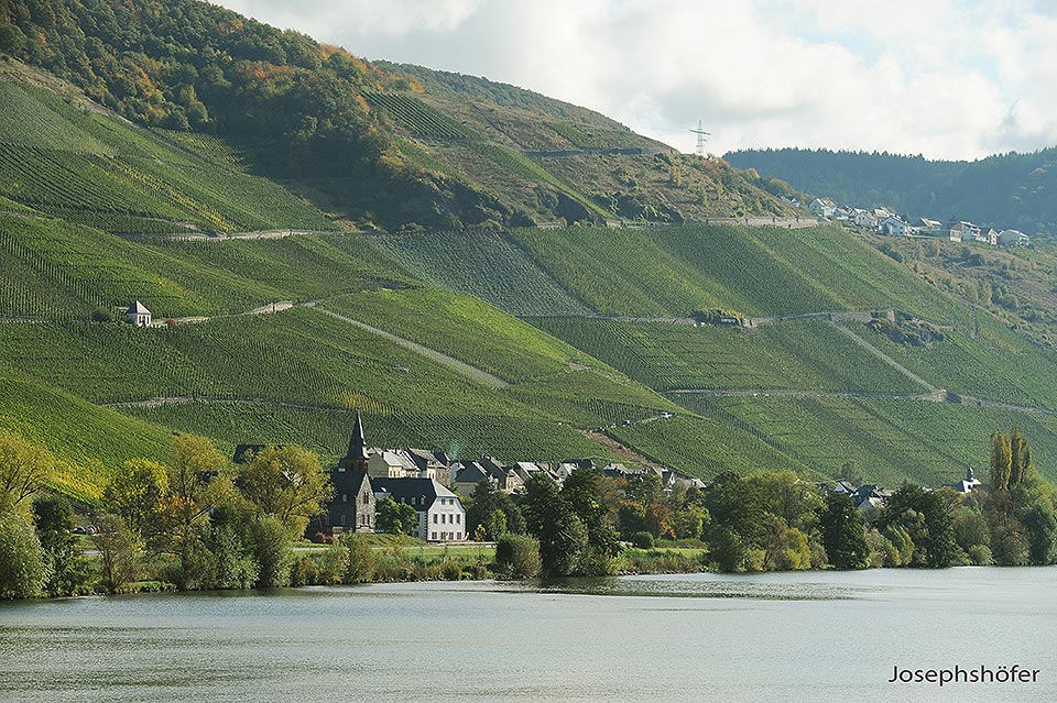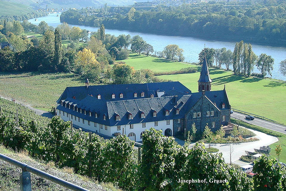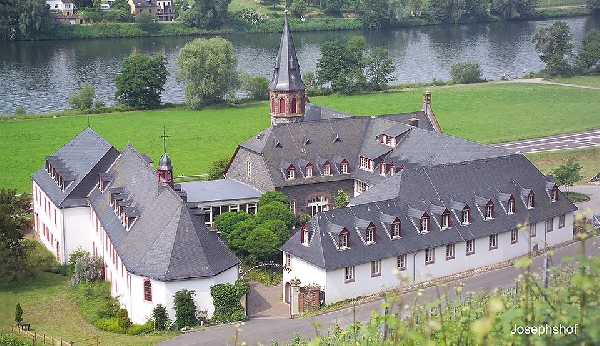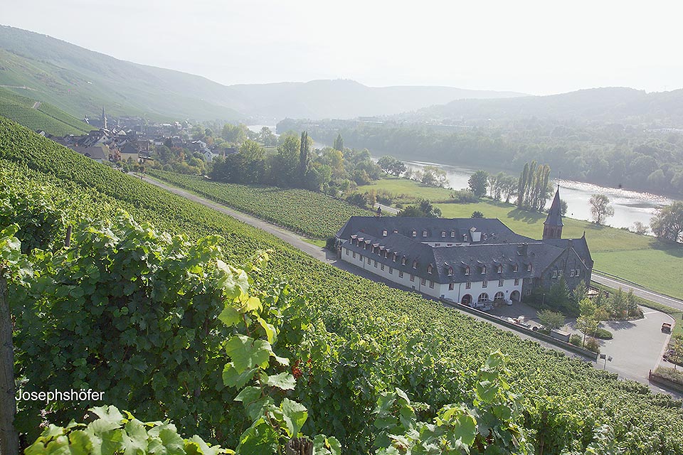 Das ehemalige Kloster Josephshöfer wurde vor 1100 Jahren zum ersten Mal urkundlich erwähnt. Von hier aus erblickt man das ehemalige Kloster mit seinen Weinbergen und etwas weiter die Orte Wehlen, Graach und Kues.